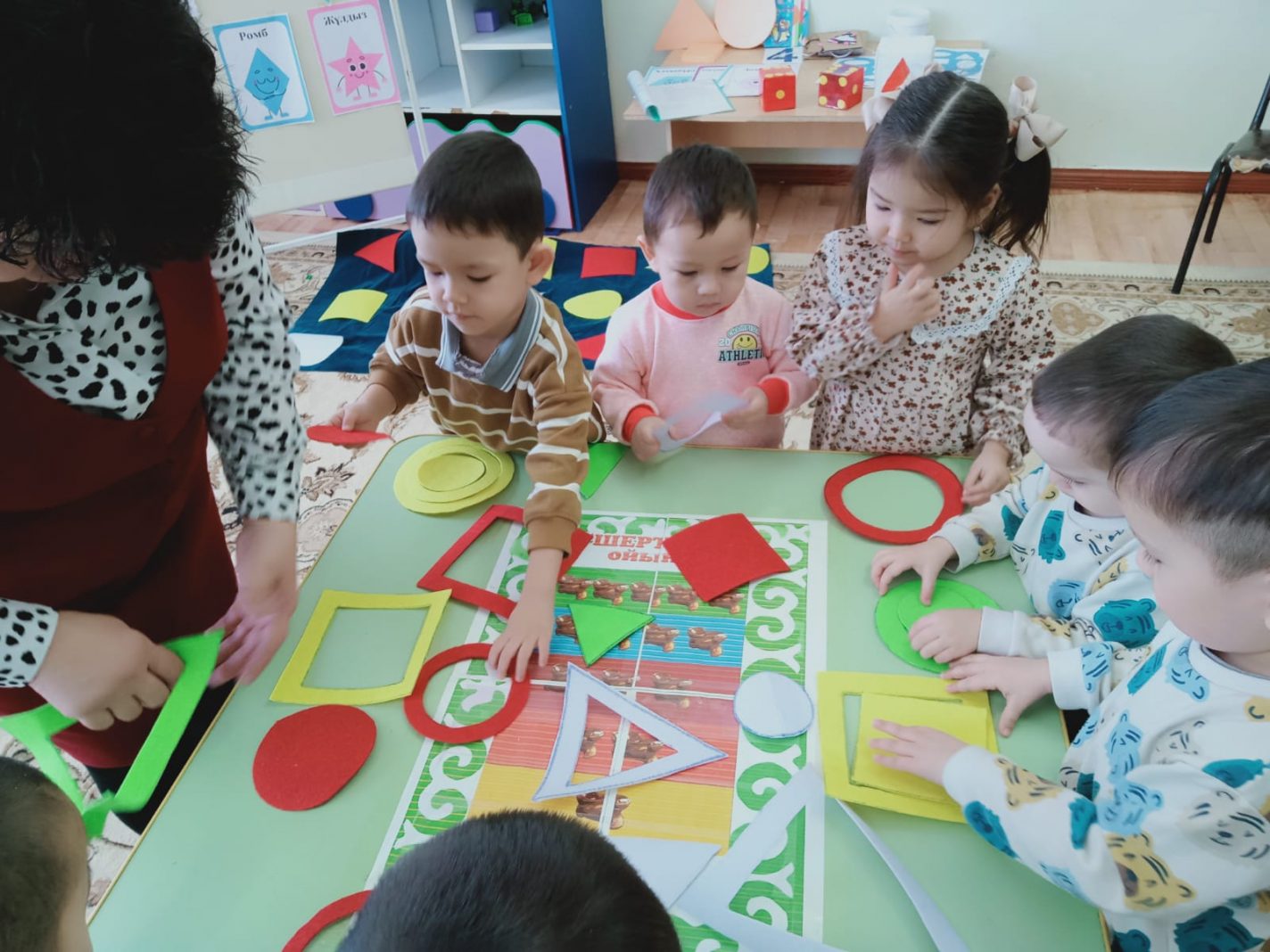 По предмету математика с воспитанниками миницентра был проведен открытый урок. Тема урока: Геометрические фигуры. Цель урока: С помощью разных методов расширить знания детей о геометрических фигурах. На уроке присутствовали дети разных возрастов и были применены разноцветны различные раздаточные материалы.