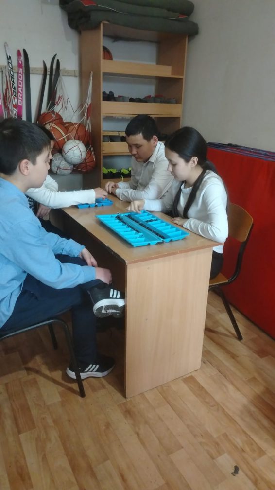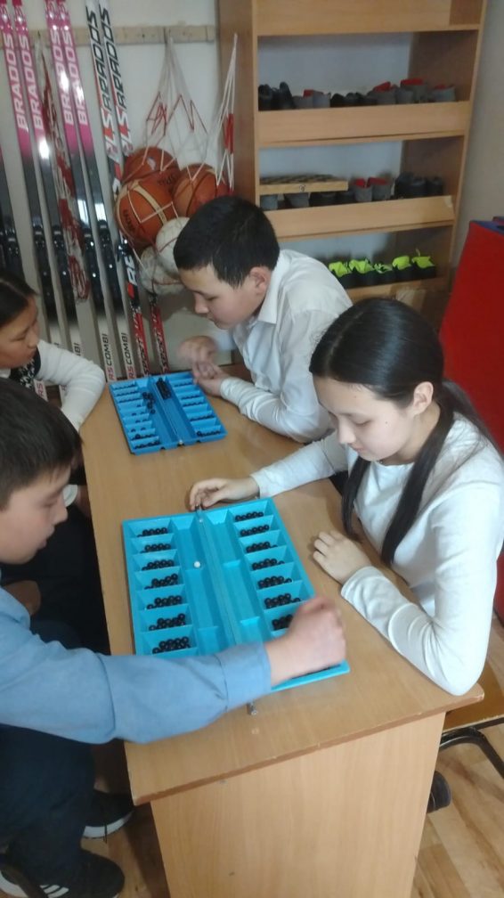5-6 сынып оқушылары "Тоғызқұмалақ" ойнау барысында.