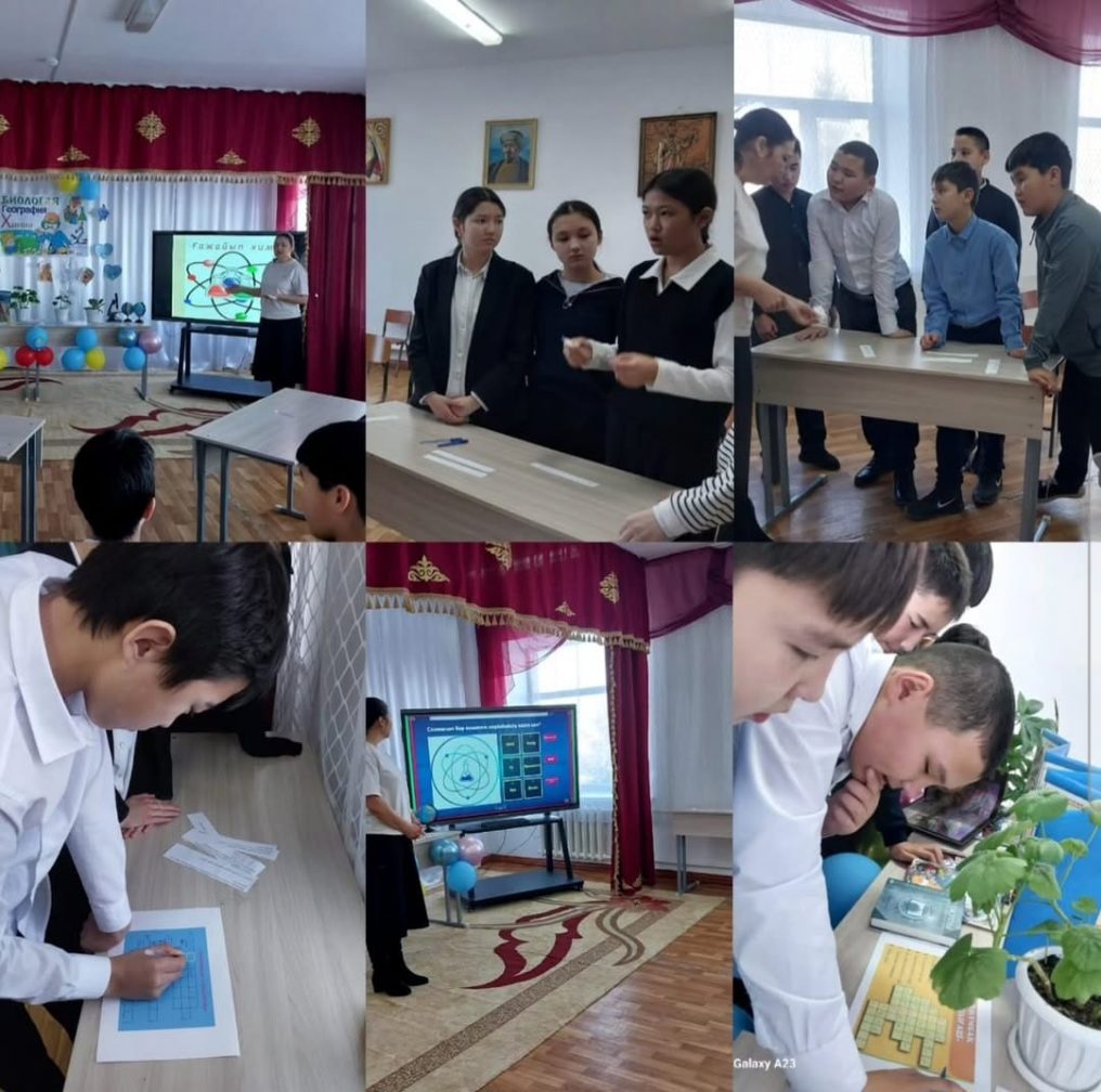 Химия, биология, география онкүндігінің жетінші күні "Ғажайып химия" тақырыбында зияткерлік ойын өткізілді. Оқушылар белсене қатысып,  көп қызықты тапсырмаларды орындап, өз білімдерін толықтырды.