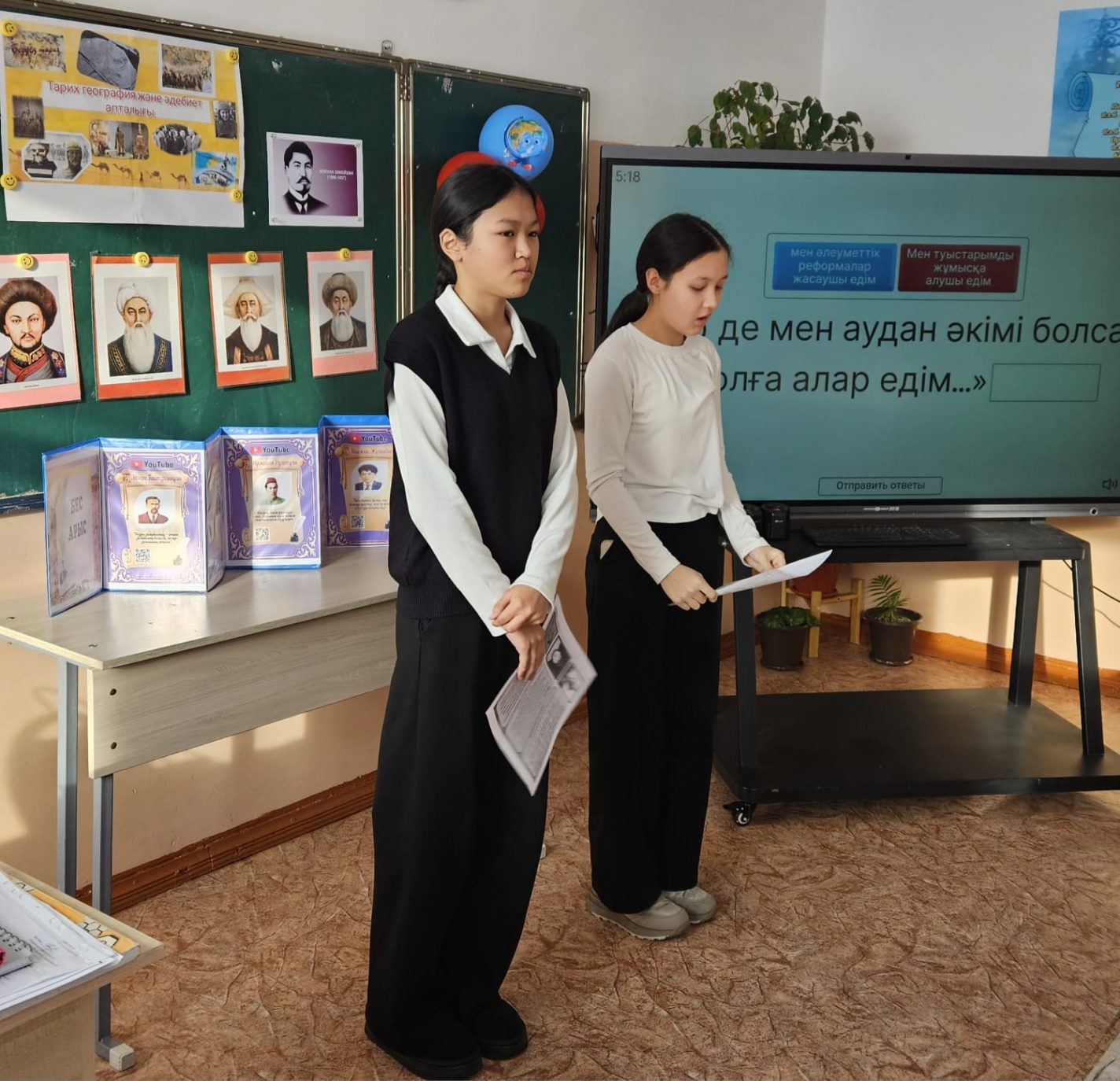 7 - 9 сынып оқушылары "Тарих, әдебиет, география" апталығы аясында  "ХХІ ғасырдың көшбасшысы" зияткерлік ойынға қатысып, өз білімдерін нығайтты.