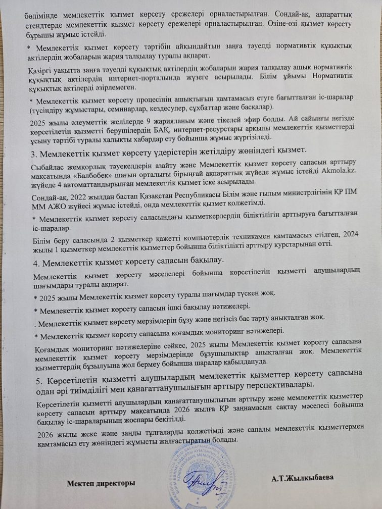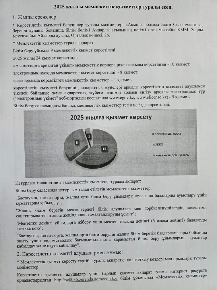 2025 жылы бойынша мемлекеттік қызметтер көрсету саласындағы қызмет туралы есеп