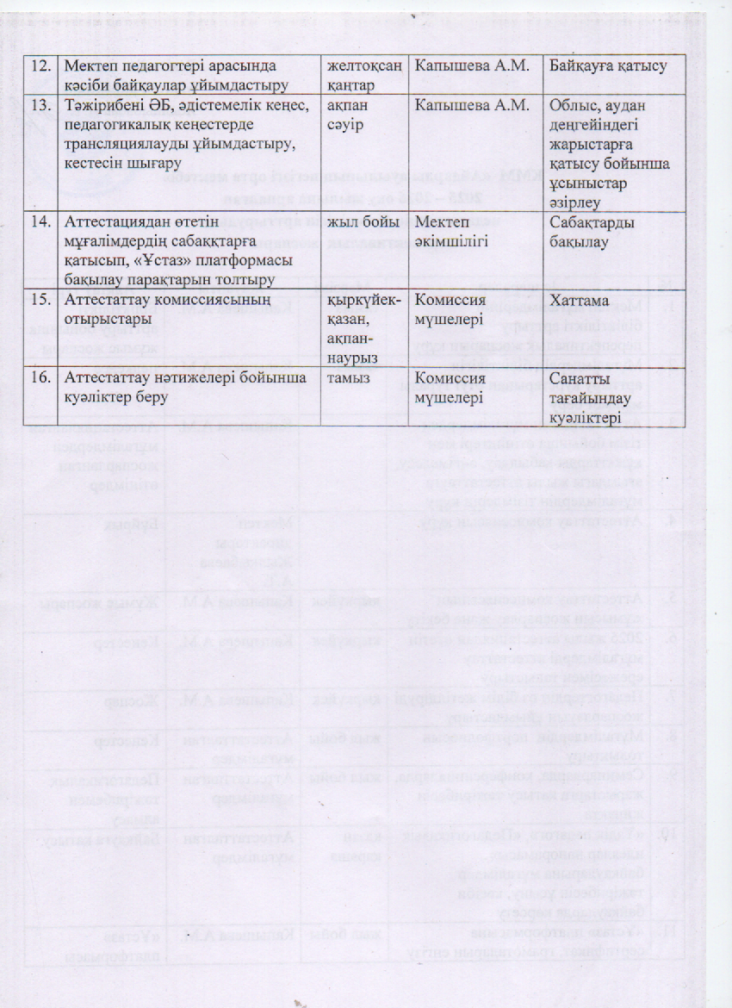 Педагогтердің біліктілігін арттырудың перспективалық жоспары