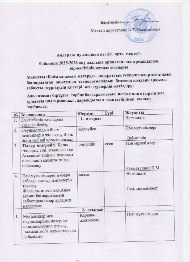 Шығармашылық бірлестіктің жоспары